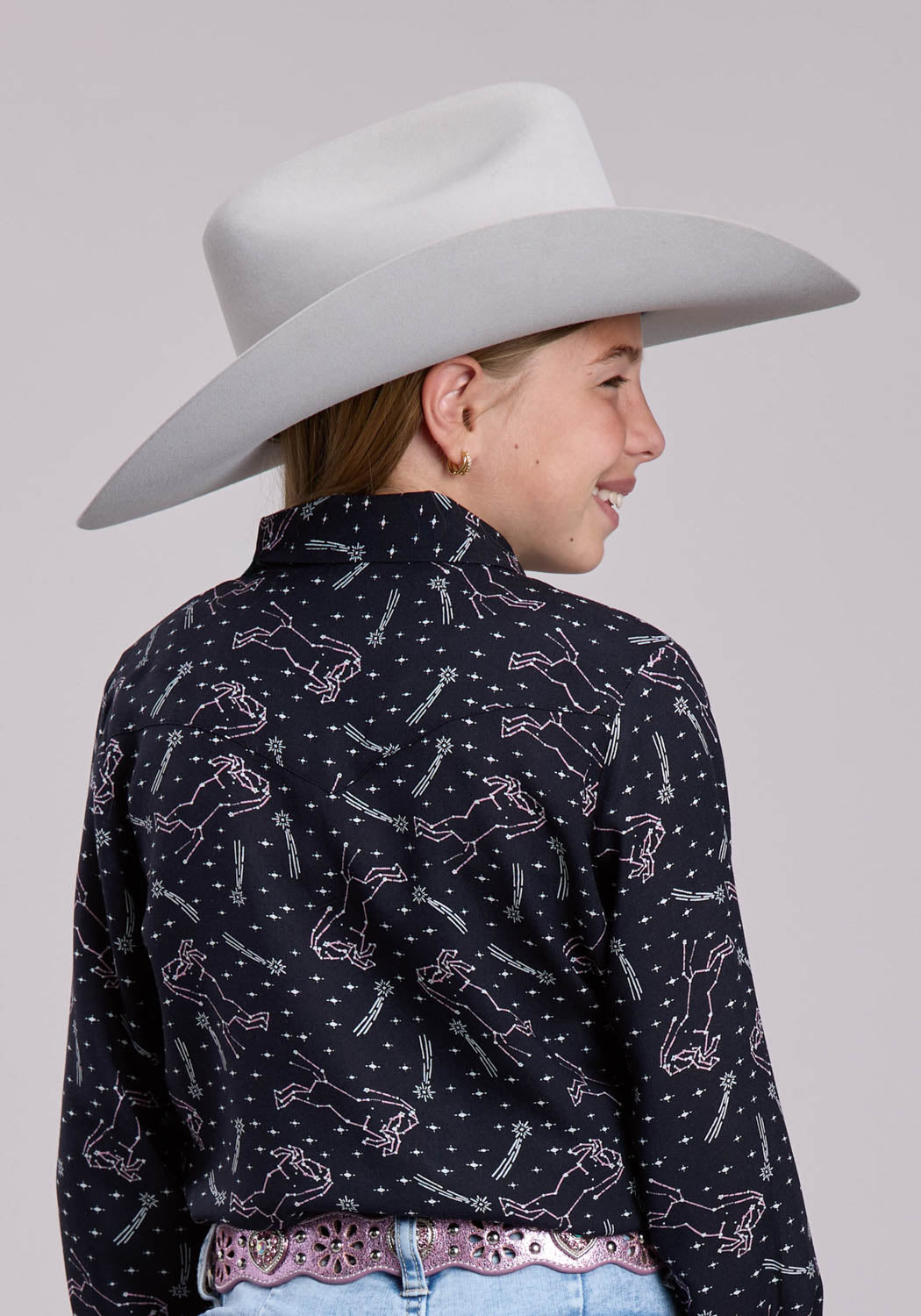 Roper Kids Girls Constellations Print Black 100% Rayon L/S Shirt