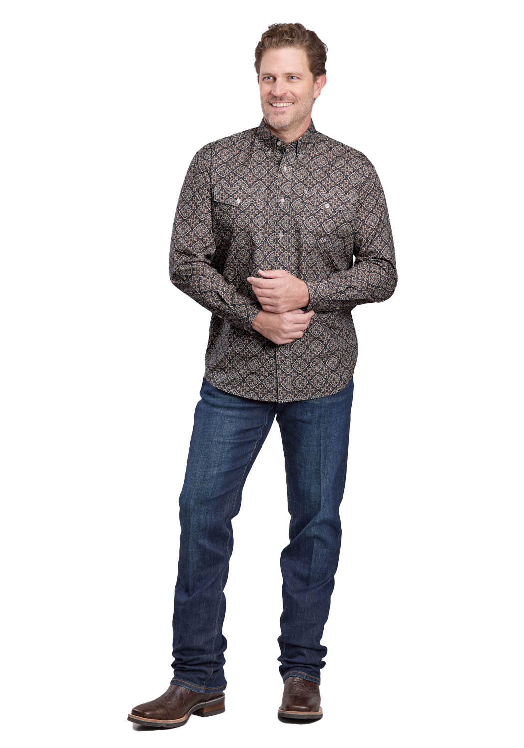 Roper Mens 2586 Bronze Medallion Brown 100% Cotton Btn L/S Shirt