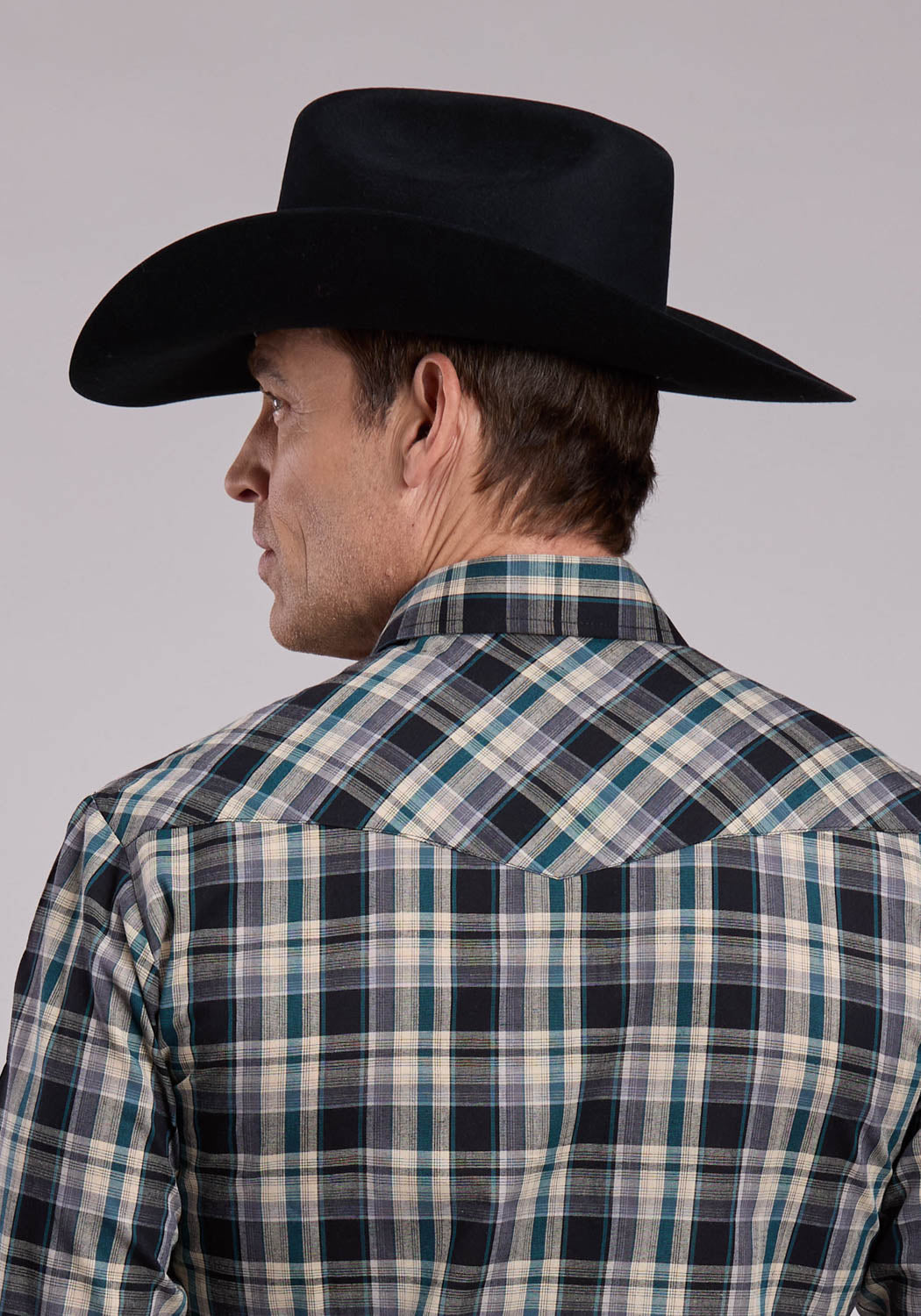 Roper Mens 2712 Plaid Forest/Black Cotton Blend L/S Shirt