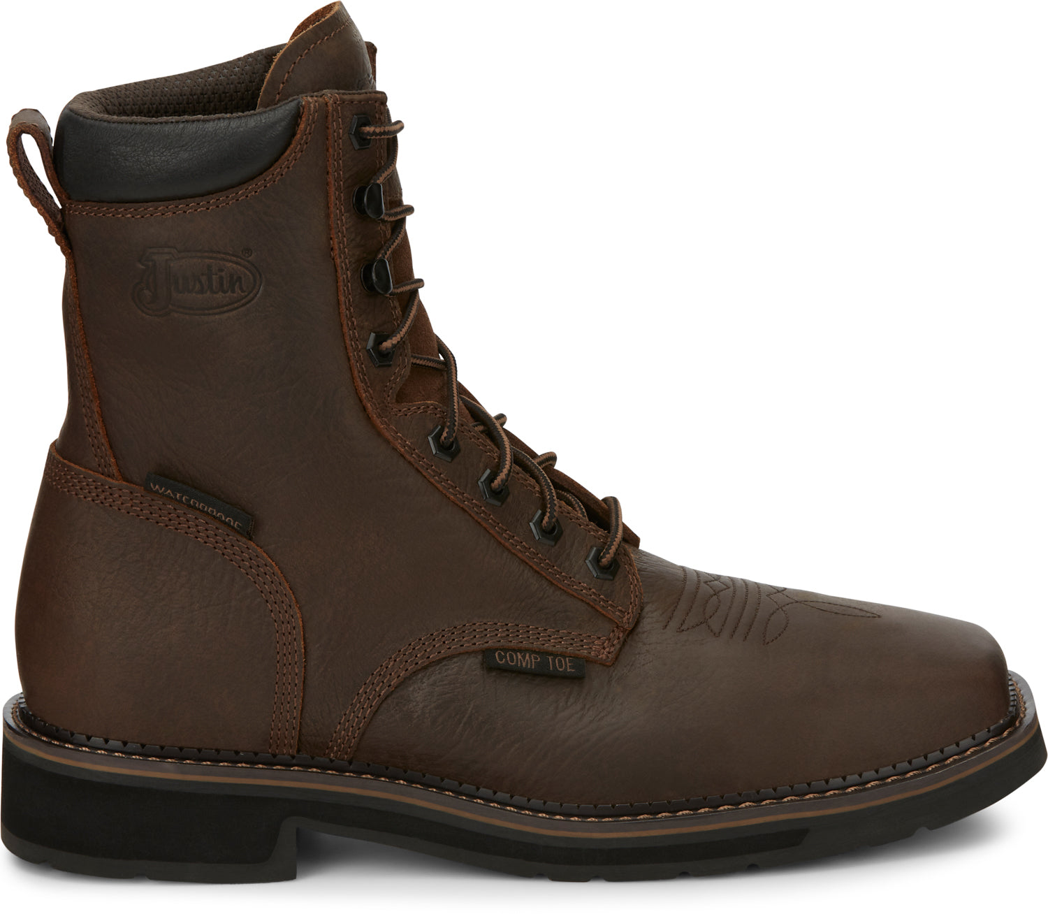 Justin 8in WP CT Mens Rustic Driller Leather Work Boots