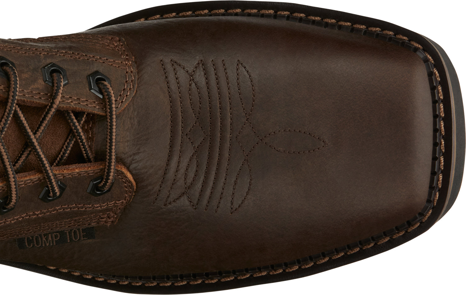 These men work boots feature a composite toe, rubber outsole, and a rustic barnwood top. Get ready to work in comfort with these boots!