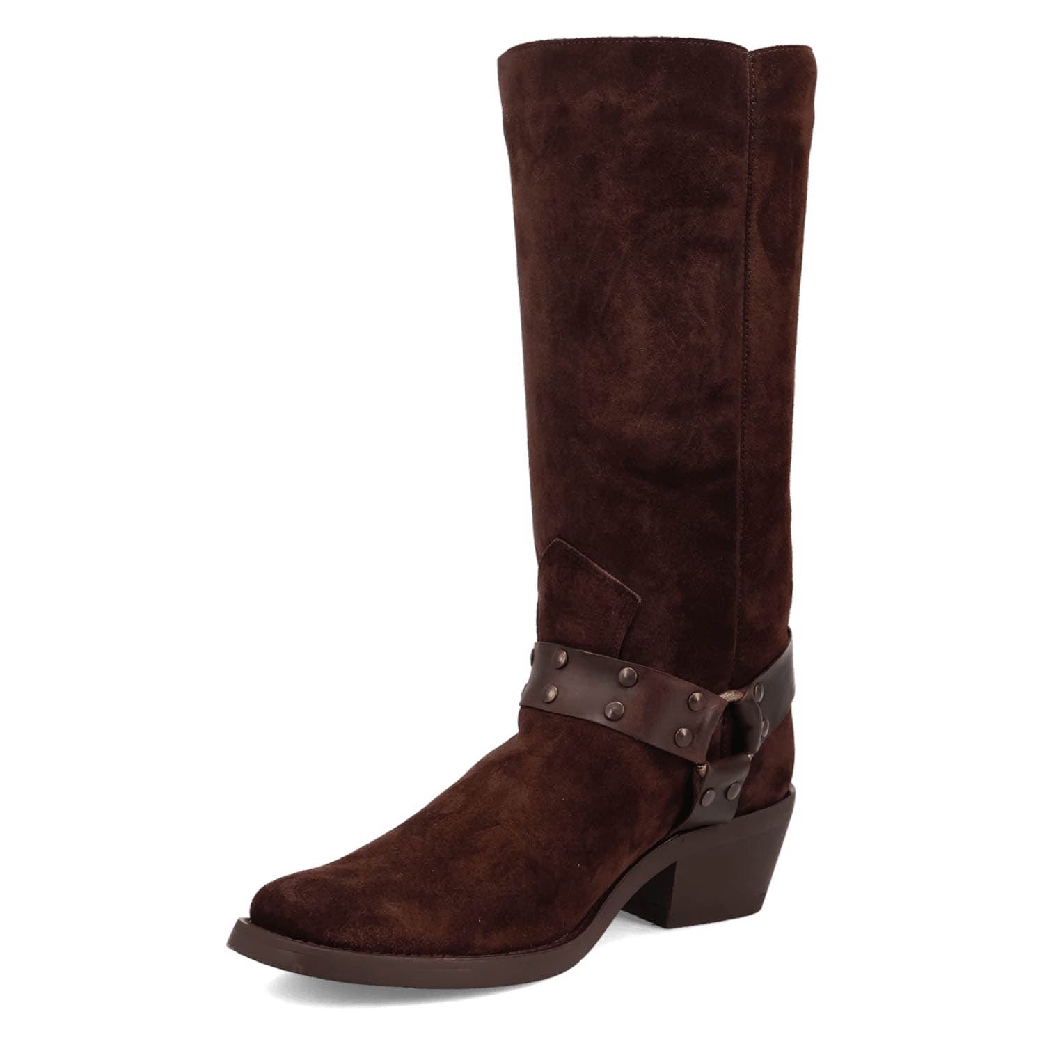 Blending the past and the present, Dingo boots stand out in the crowd. Introducing BRONCO, a standout blend of bold style and classic craftsmanship. Made from high-quality all-over suede, these boots feature distinctive harness detailing and elegant stitching on the shaft, giving them a unique, rugged appeal. Designed for comfort and built to last, the Bronco is perfect for any occasion. Elevate your wardrobe with the Bronco and embrace a look that�s both adventurous and refined. Wear these cowboy boots with pride!