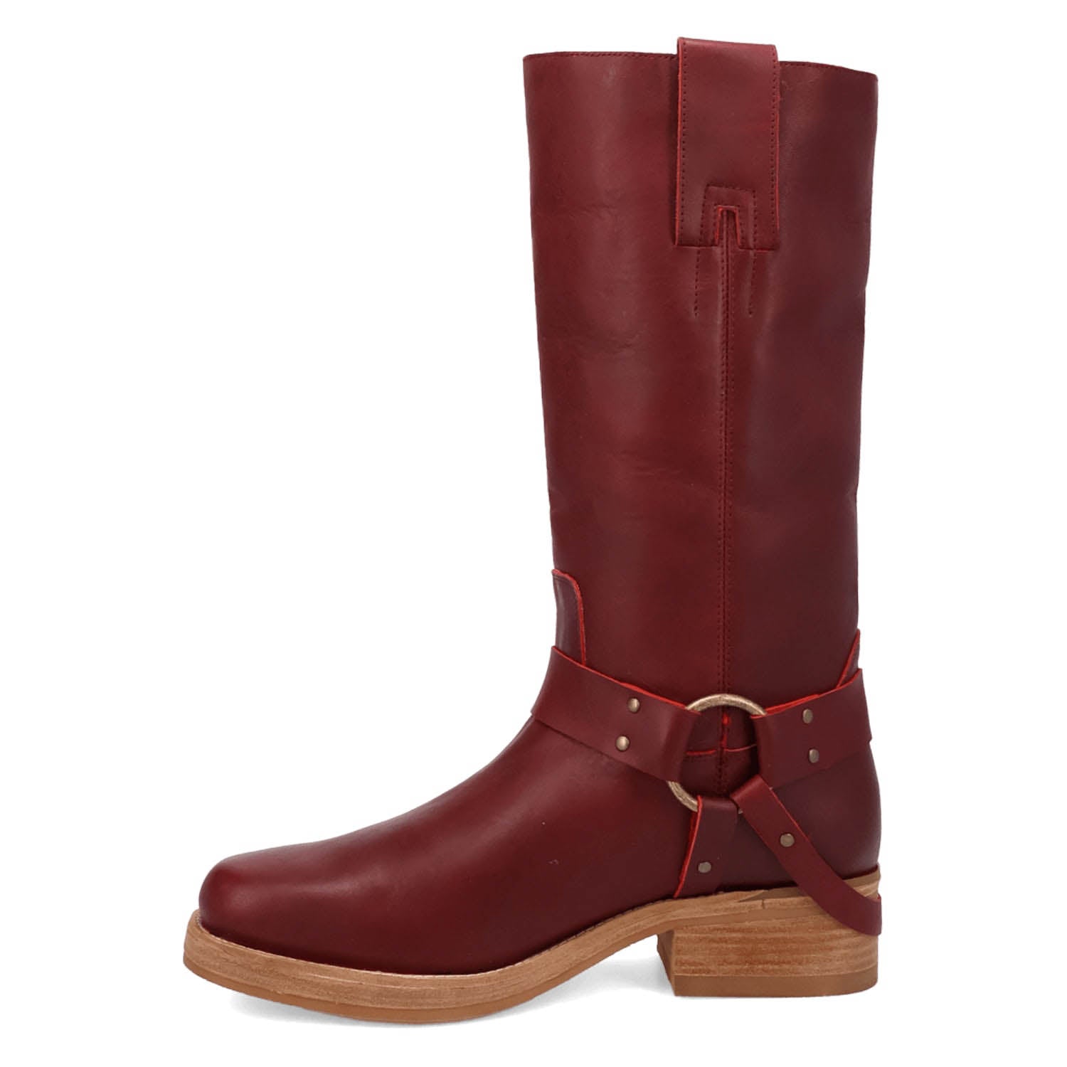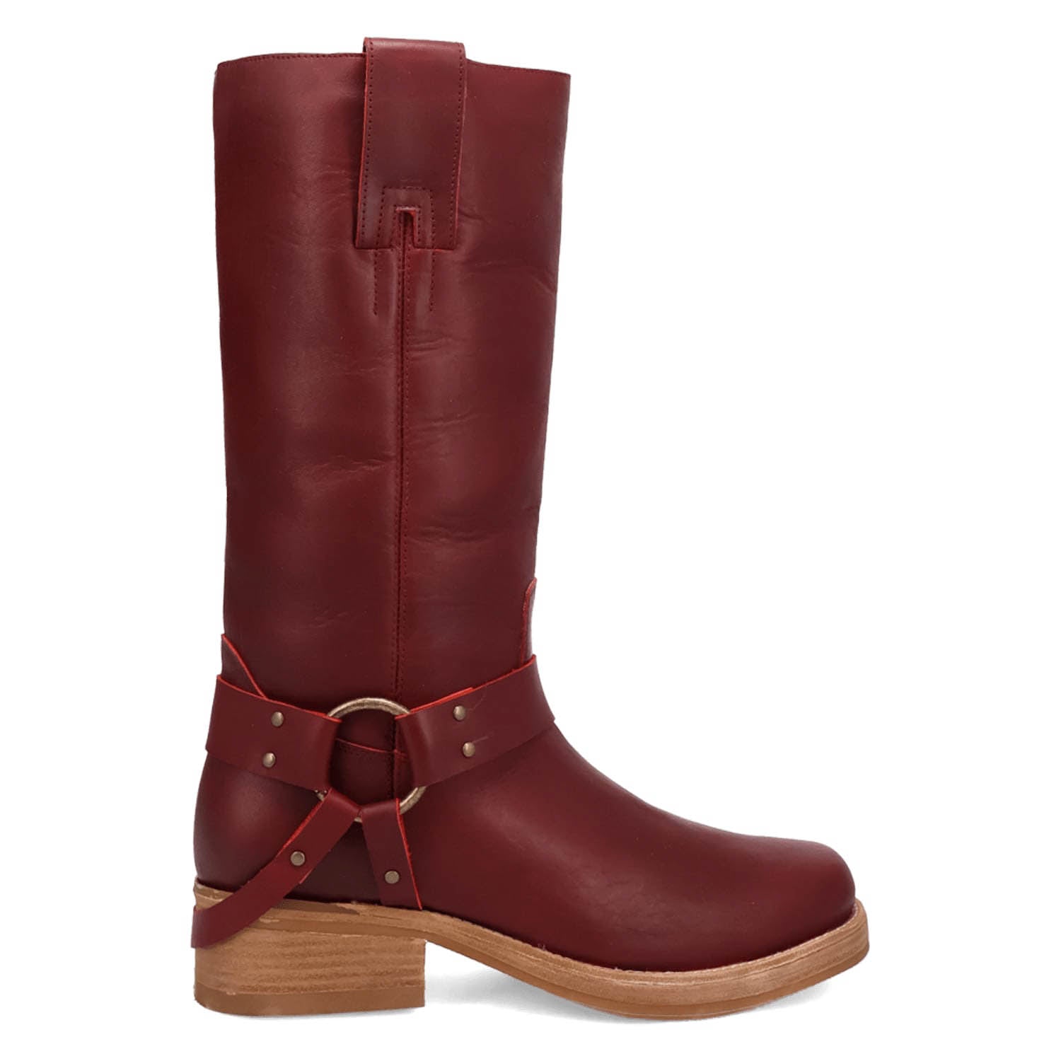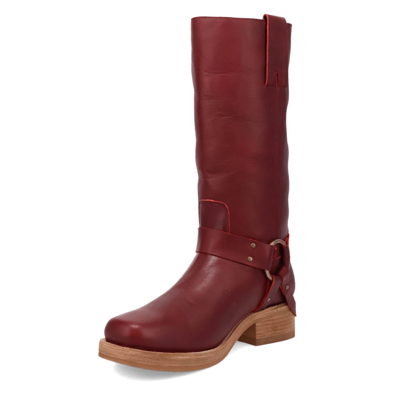 Blending the past and the present, Dingo boots stand out in the crowd. Rip brings vintage ruggedness to life with its bold, Western-inspired harness detail. Crafted from high-quality leather, this boot features a clean design with an added edge from the distinctive harness treatment. Its tall silhouette and sturdy construction give it a timeless, commanding presence, perfect for those who want to make a statement with a blend of classic and rugged style. Rip is for those who embrace the untamed spirit of vintage fashion. Keep your feet protected and comfortable in these motorcycle boots.