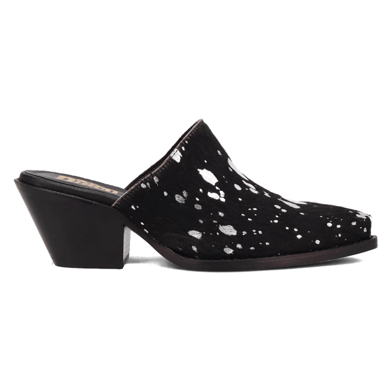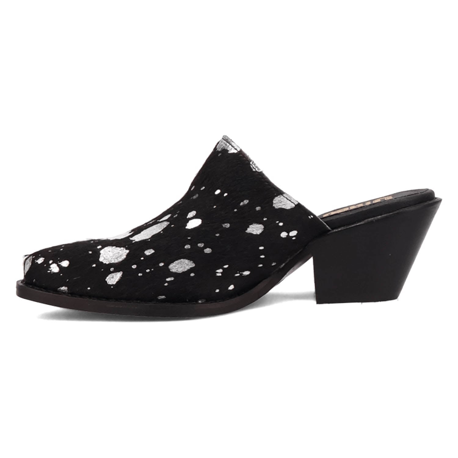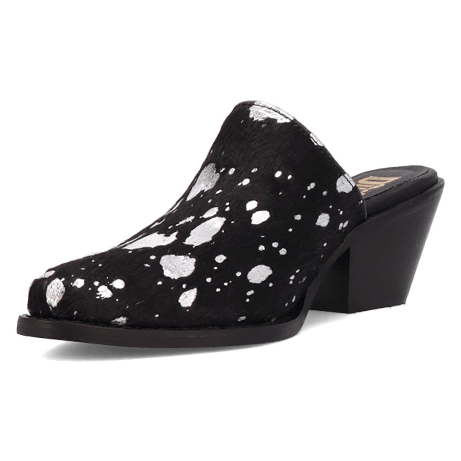 Dingo Womens Cash Cow Black Hair-on-Hide 2.5in Heel Mules Shoes
