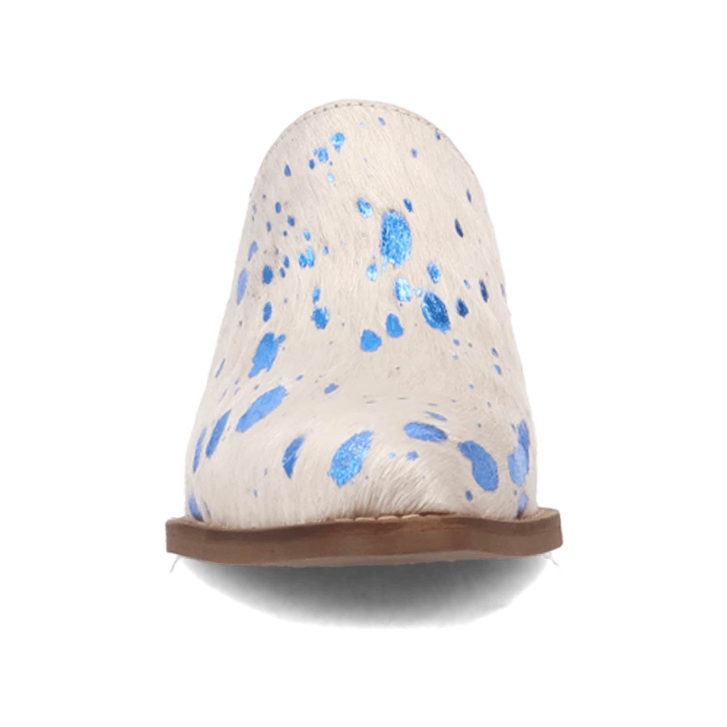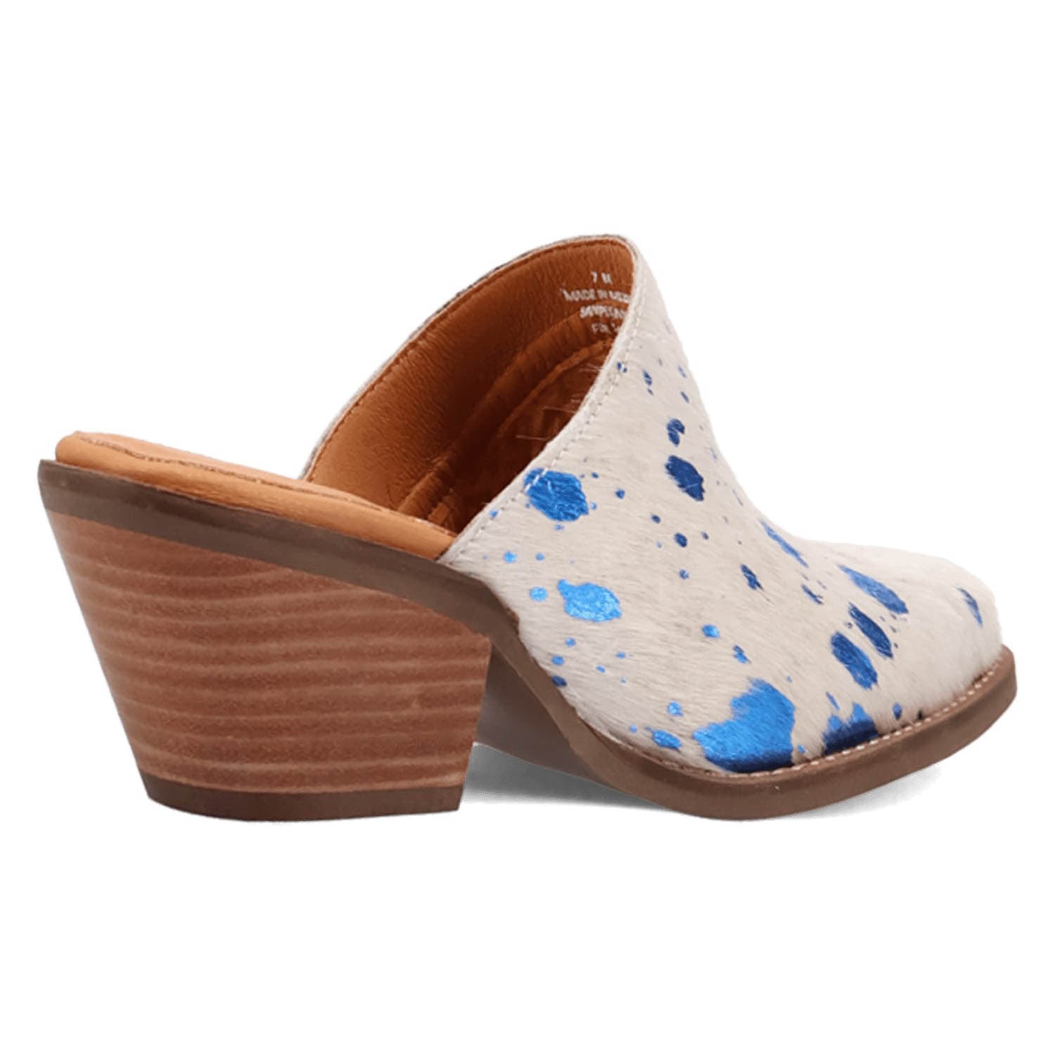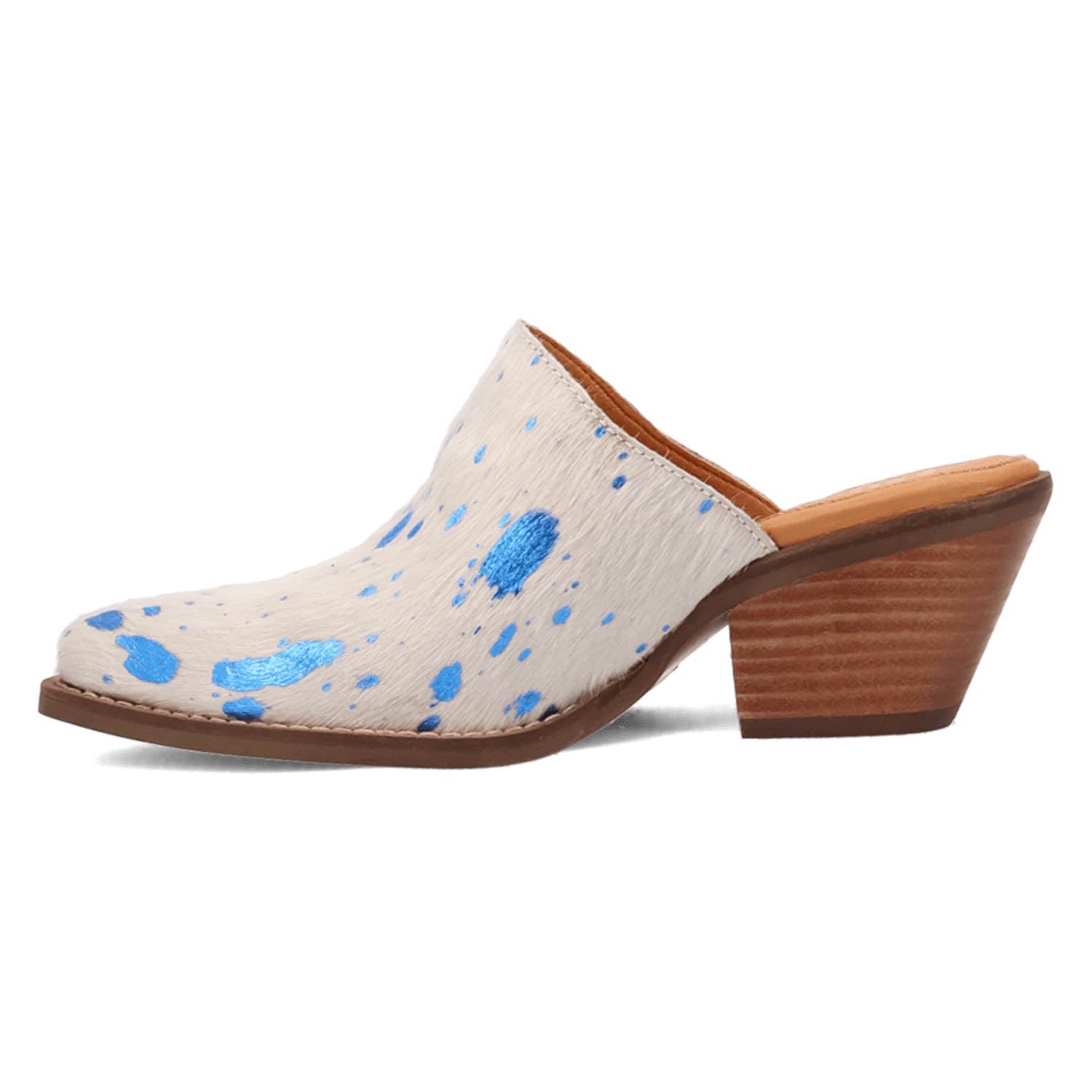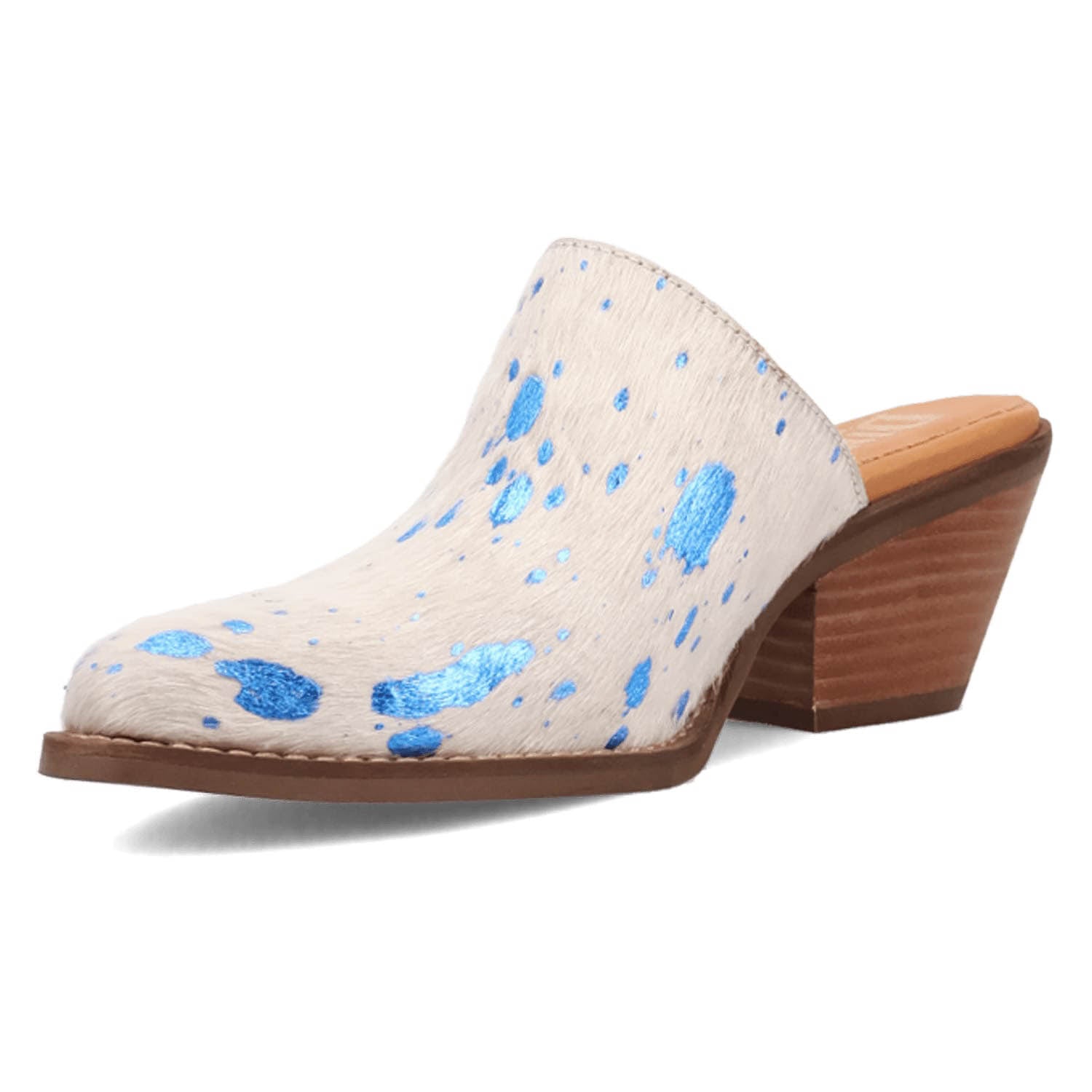 Dingo Womens Cash Cow Blue Hair-on-Hide 2.5in Heel Mules Shoes