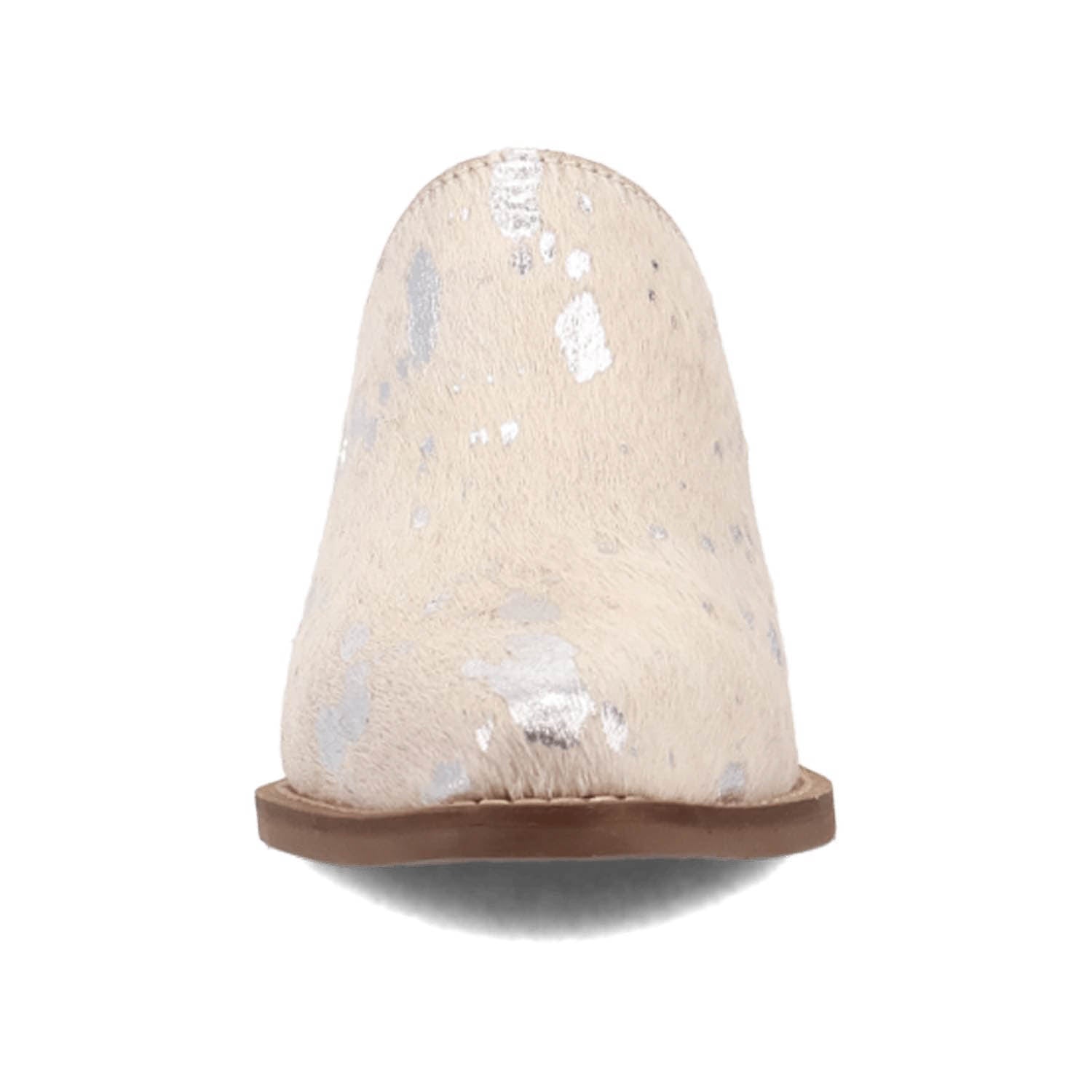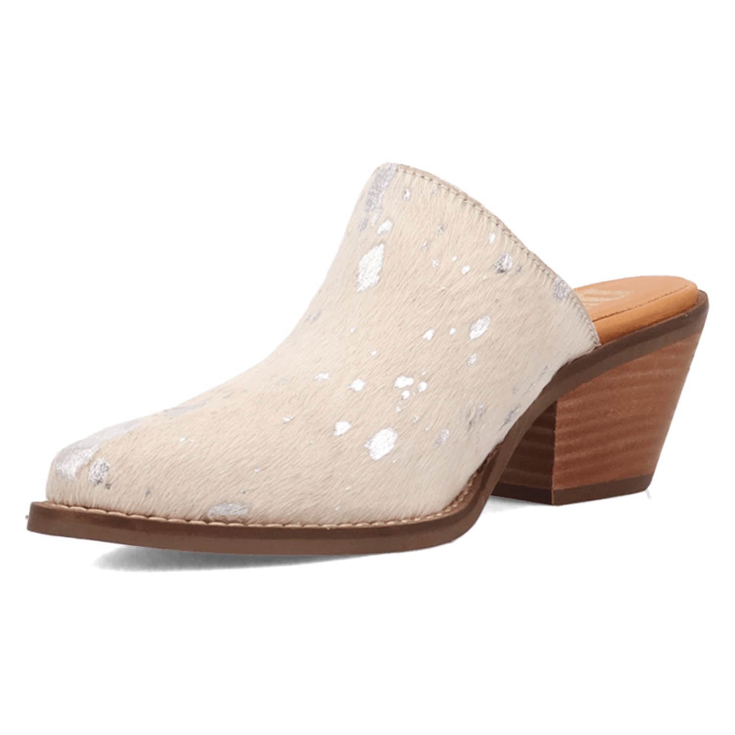 Dingo Womens Cash Cow Silver Hair-on-Hide 2.5in Heel Mules Shoes