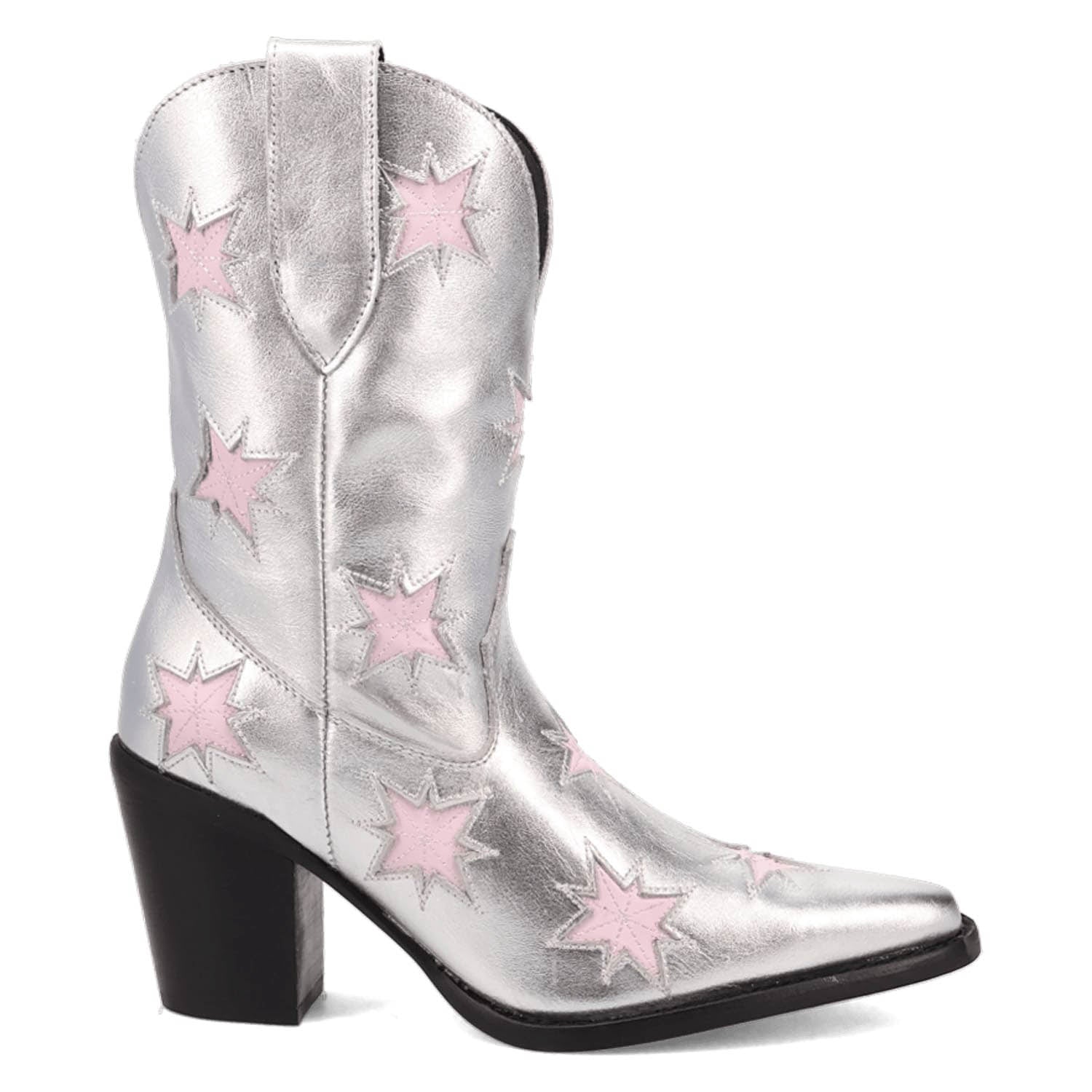 Dingo Womens Starburst Silver Leather 9in Cowboy Boots