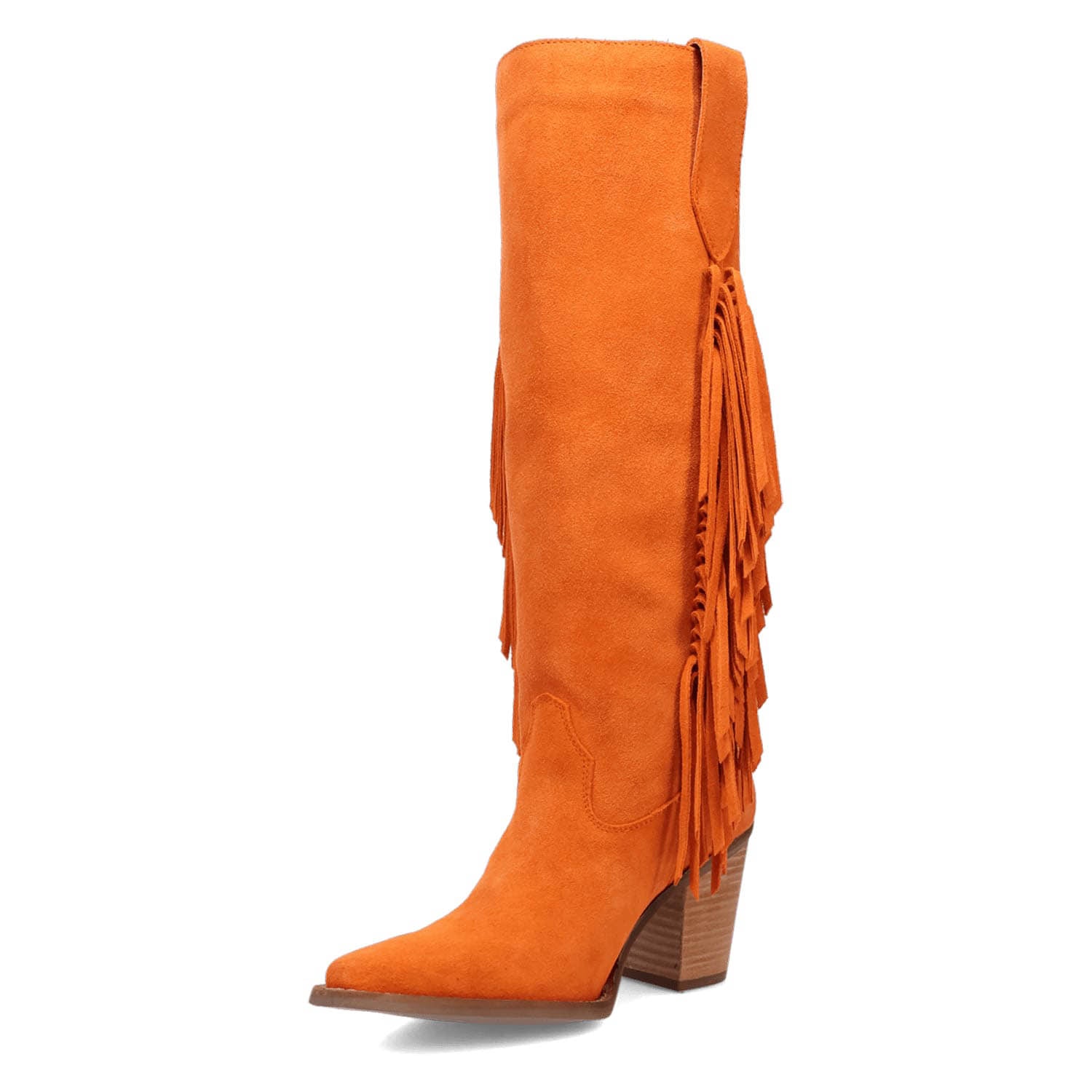 Dingo Womens Twister Orange Suede 16in Fringe Cowboy Boots
