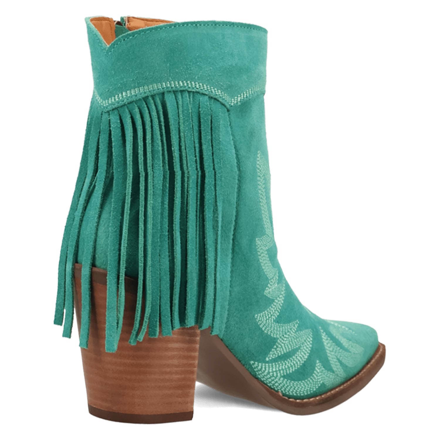 Blending the past and the present, Dingo boots stand out in the crowd. Where boho meets Western. These boots feature intricate fringe detailing and a unique blend of bohemian charm and rugged Western style. A fusion of free-spirited bohemian aesthetics and the timeless appeal of the American West, Wild Sage is the perfect footwear for those who embrace a life of adventure. Made from premium quality materials, these ankle boots will add a polished look to your western wardrobe.